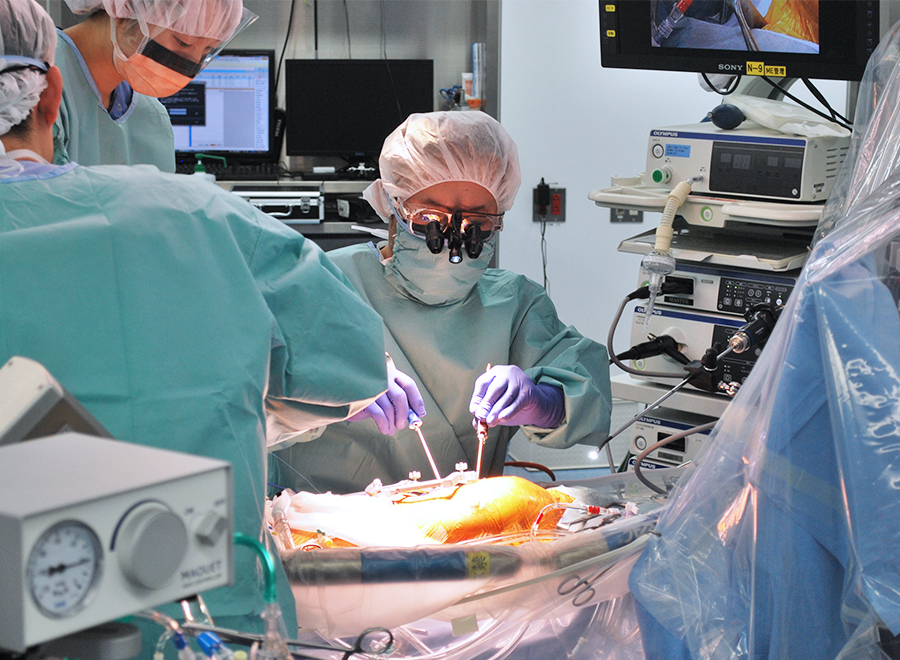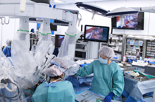 近年は「患者様の身体に優しい低侵襲治療」として、小さな切開創から行う低侵襲心臓手術(MICS)や、MICSの進化形と言えるロボット心臓手術(ダビンチ心臓手術)、大動脈瘤のステントグラフト治療、心房細動に対する内視鏡手術(ウルフ-オオツカ法)等を積極的に実施し、日々技術の研鑽に努めています。